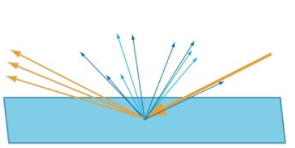 有的则可以正常反射出去,形成宏观平面的漫反射光照,如右图。