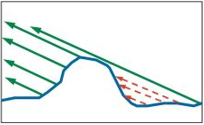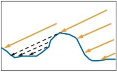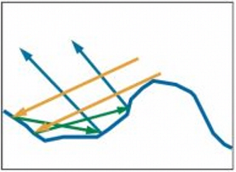 其中有的微平面是因为接收不到入射光,造成几何阴影,如左图。