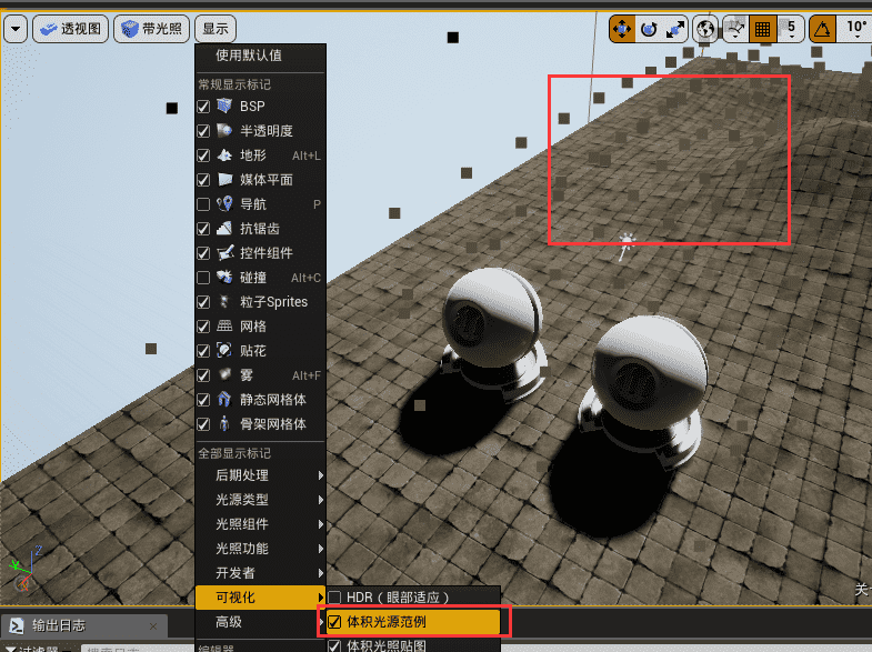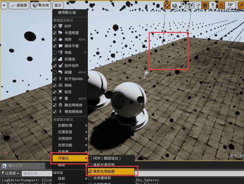 我们可以通过打开预览界面的显示选项打开 VLM 的光照探针, 以查看其具体的分布。