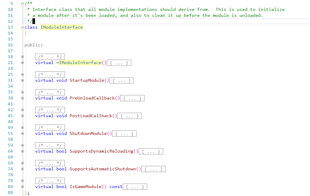 除此之外,为了满足每个模块的dll (或lib) 能被顺利地找到, 即把这个接口暴露出来给其他地方使用, 需要声明一些样板宏, 即 IMPLEMENT_MODULE