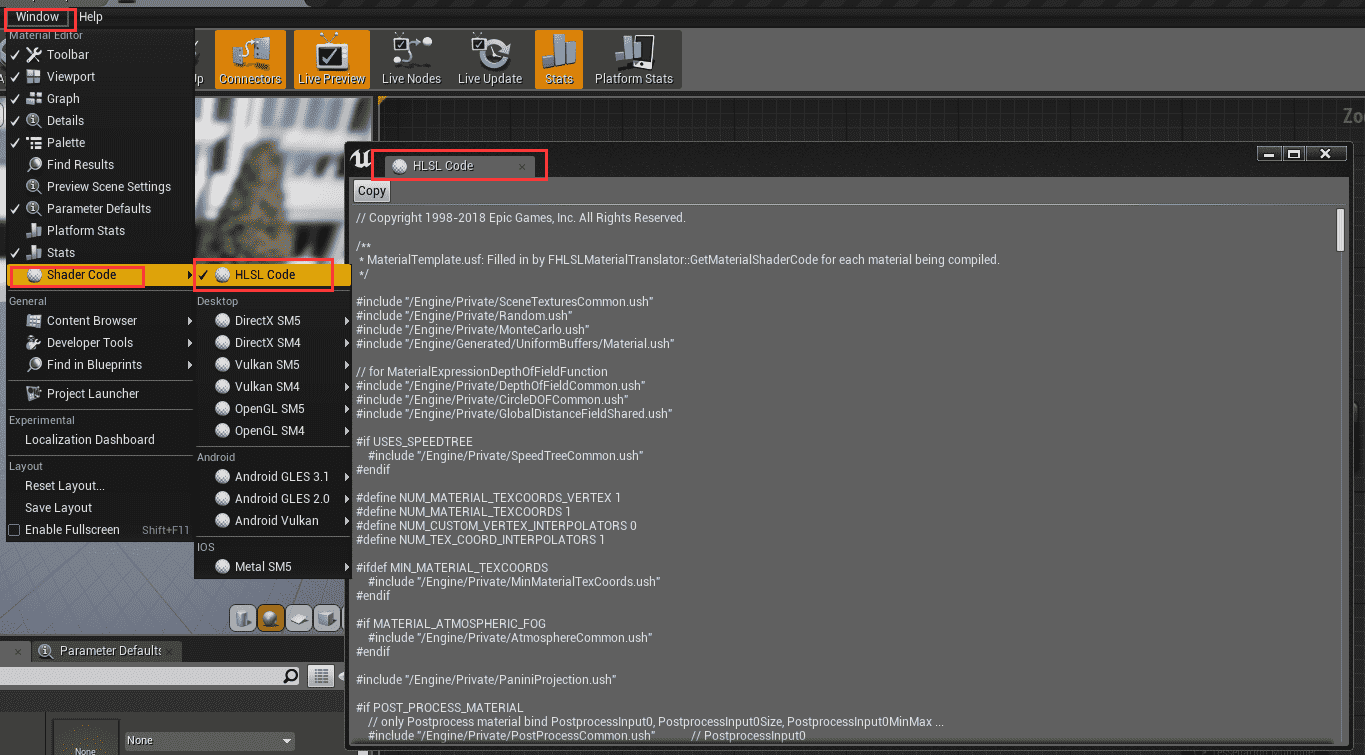 我们可以打开 HLSL Code 面板查看整个材质的 HLSL 代码