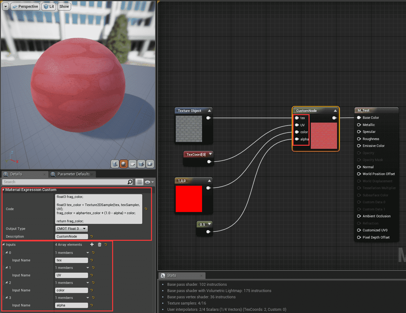 需要注意的是, CustomNode 只支持代码块和参数的传递, 并不支持函数的传递, 但是我们可以通过修改 CustomNode 的源码使其支持函数的引用, 这样做的好处是我们可以在别的地方写 shader, 再通过配置函数表引用过来。